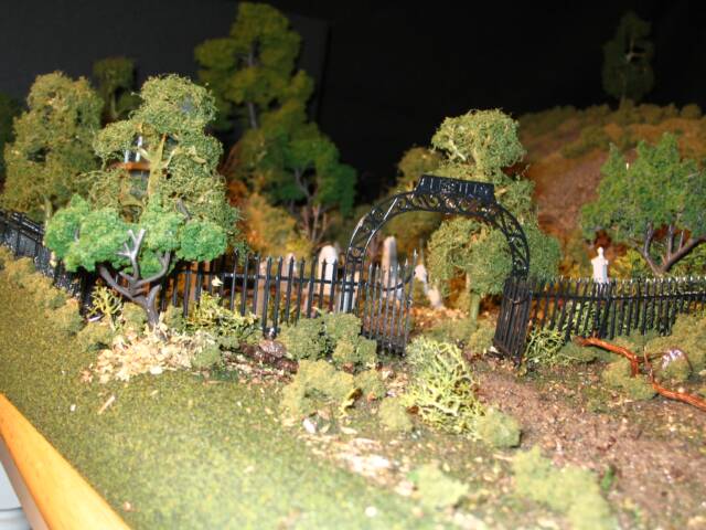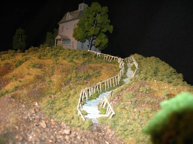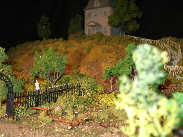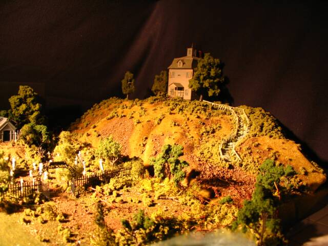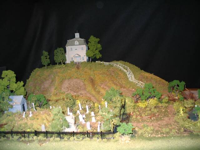 The house model was created with the original Alexander HO scale haunted house used in the series, much styrofoam, glue, railroad and accessory models and much patience and time.